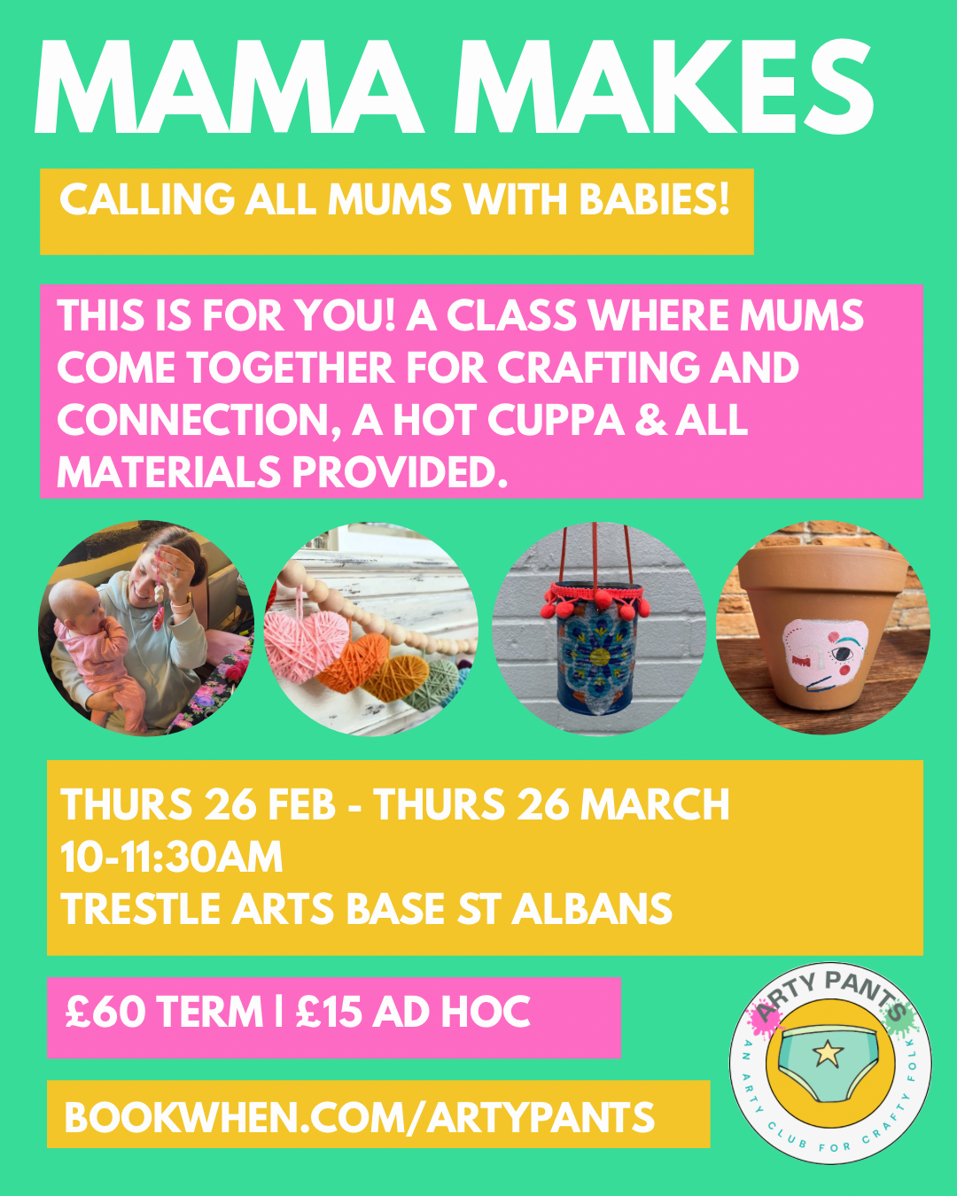 Mama Makes is a weekly class for Mums with babies to come and meet people, have a warm cuppa, chat, connect and make a new craft each week.